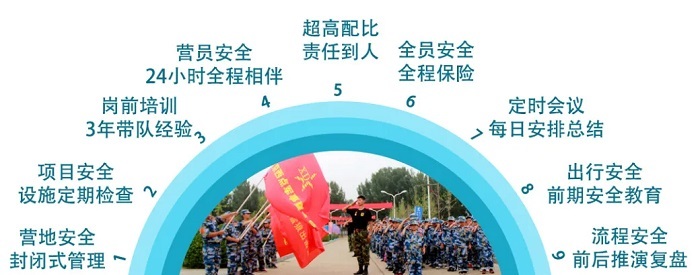 2.营地采用全封闭式军事化管理,学员统一训练、统一食宿,开营期间谢绝家长探望,特殊情况请联系营地负责人;任何时间请假或因特殊情况需离队的,都需经过规定的手续或在教官的陪同下进行。