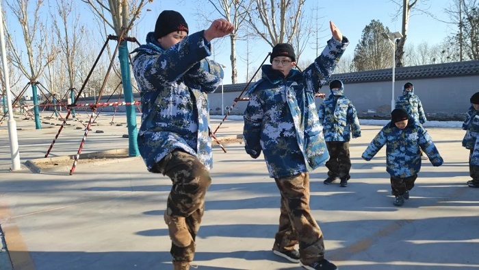 通过军事管理、军事训练来锻炼独立能力,训练孩子们吃苦耐劳、勇敢坚强、磨炼意志、