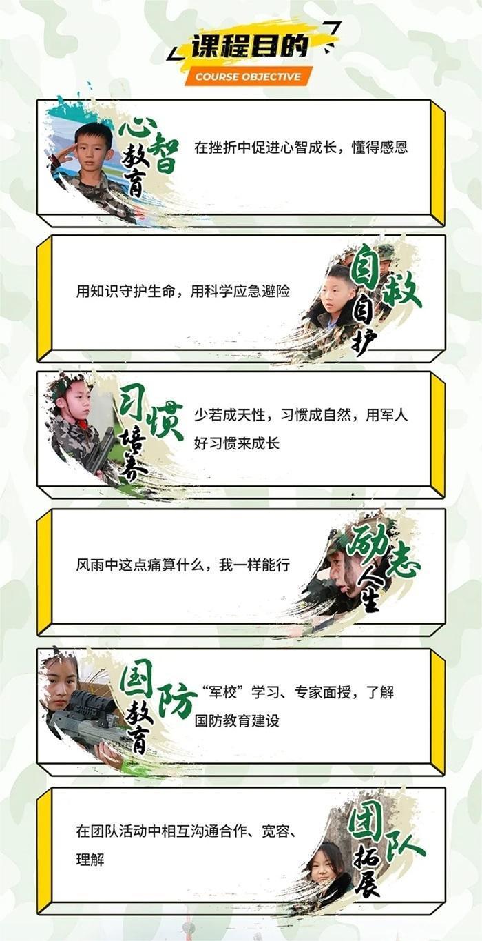 目的:锻炼营员的操作实践军事技能,在实践中成长与收获,挑战极限,激发潜能,培养营员的领导力与战斗力,全面提升军事综合素质。